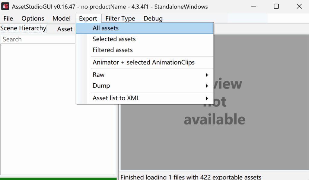 而后用AssetStudio.net6.v0.16.47对解密后的TextFiles_chs.pk进行解包即可。