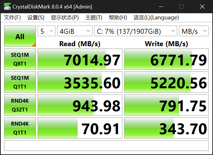 ↑海力士P44 Pro(7950X,B650M AORUS PRO AX)